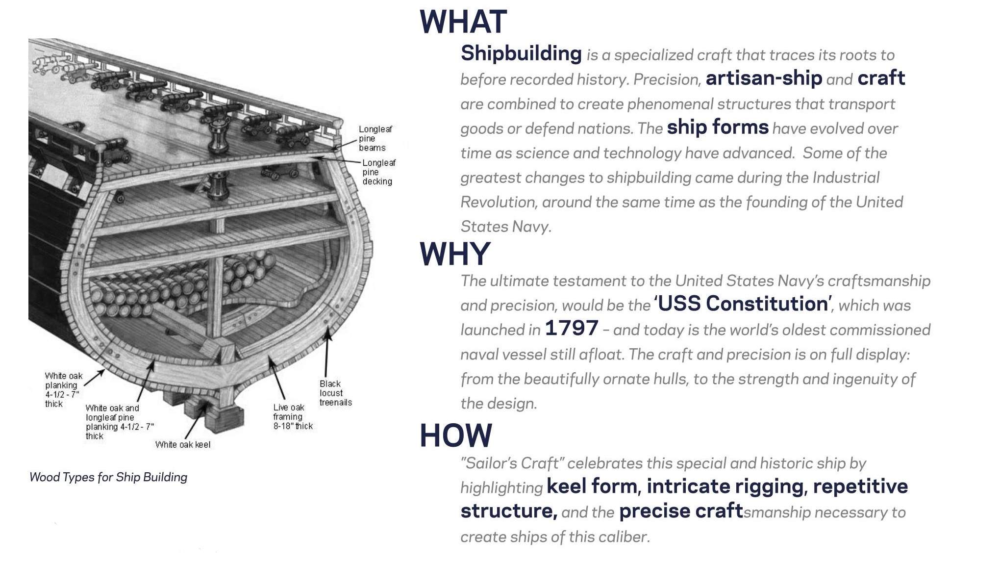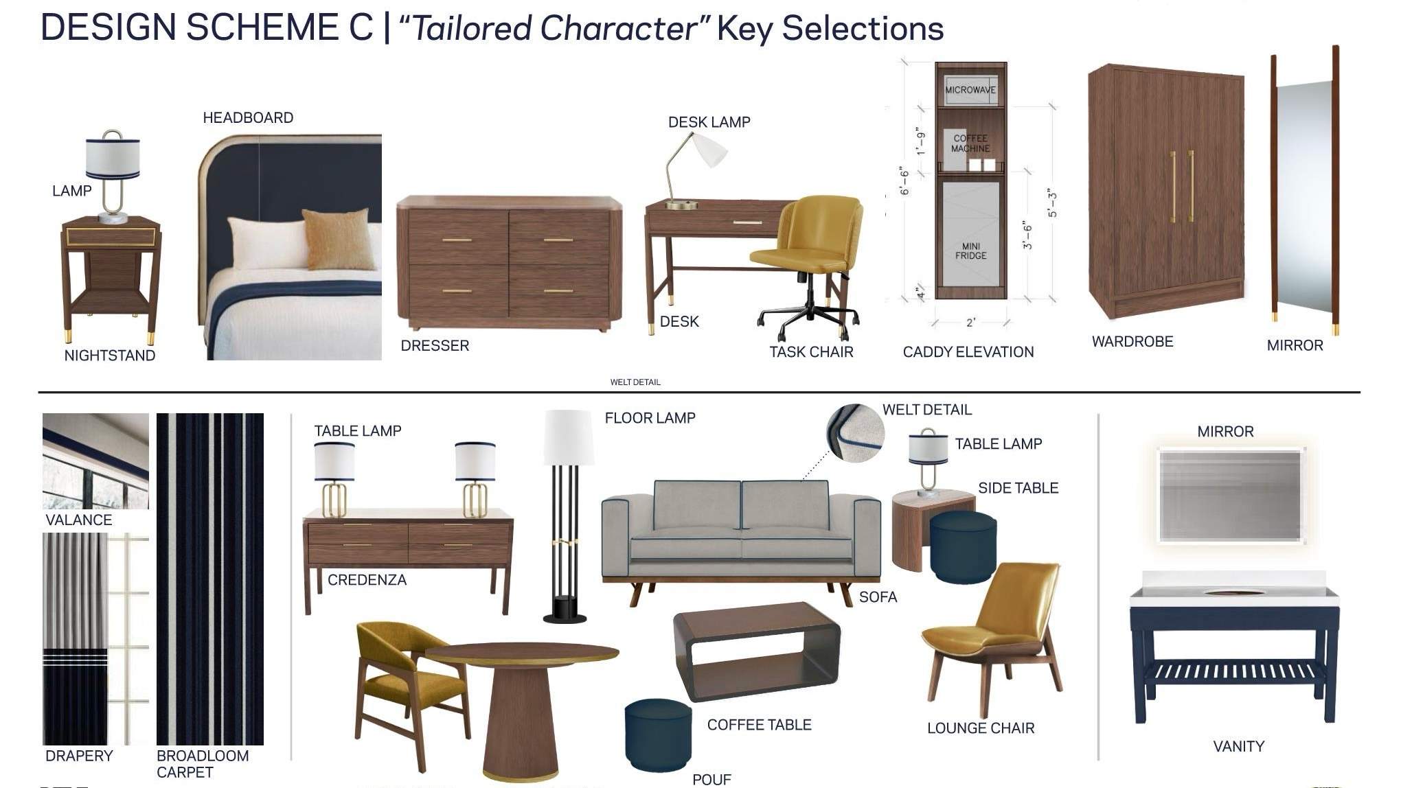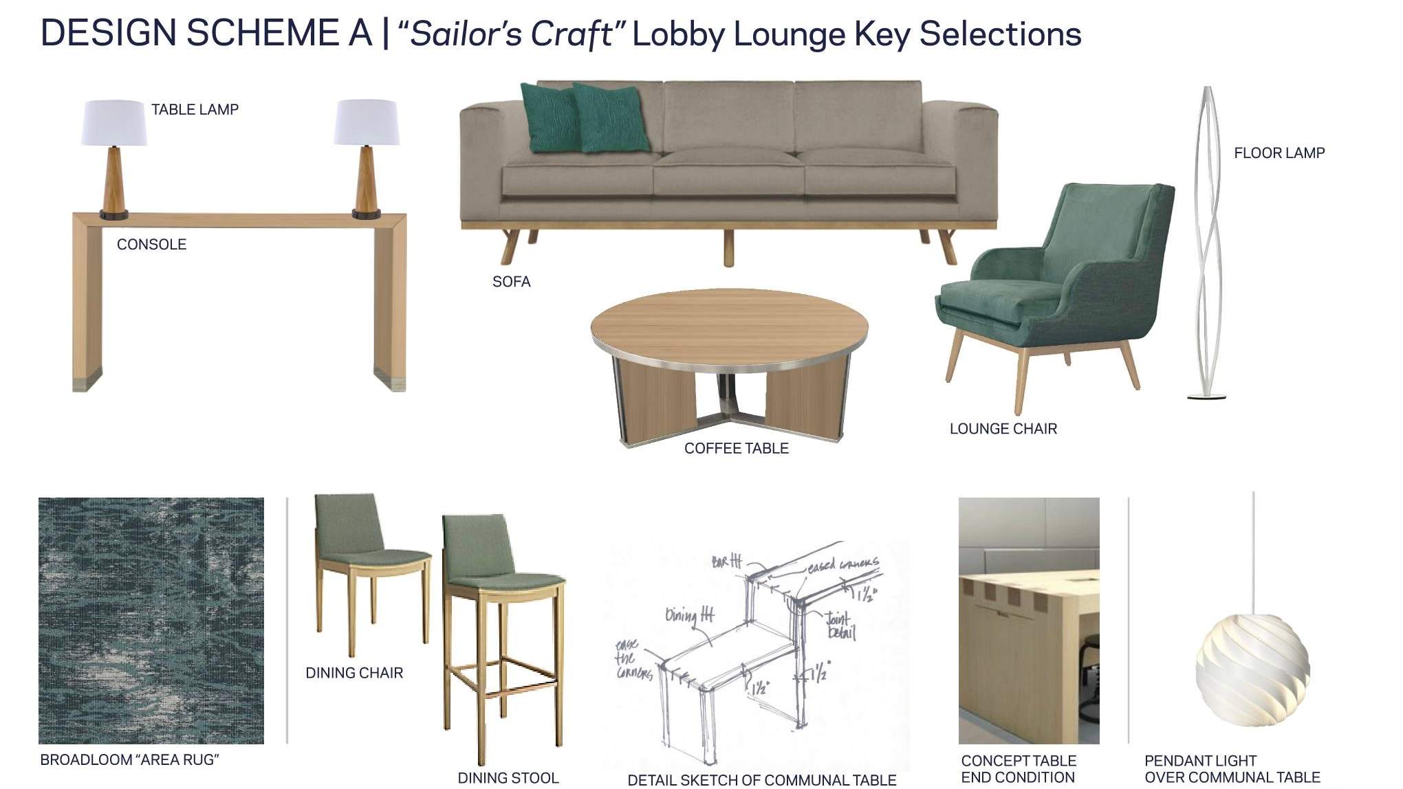 Sailors Arsenal, Sailors Craft, and Tailored Character represent three design lenses for Navy hospitality. Arsenal embodies strength and precision through bold, durable materials. Craft highlights tradition and human touch with tactile, handcrafted details. Tailored Character brings refinement and adaptability, balancing sophistication with local cultural expression. Together, they create a consistent yet flexible design language that ensures comfort, identity, and pride across Navy properties worldwide.