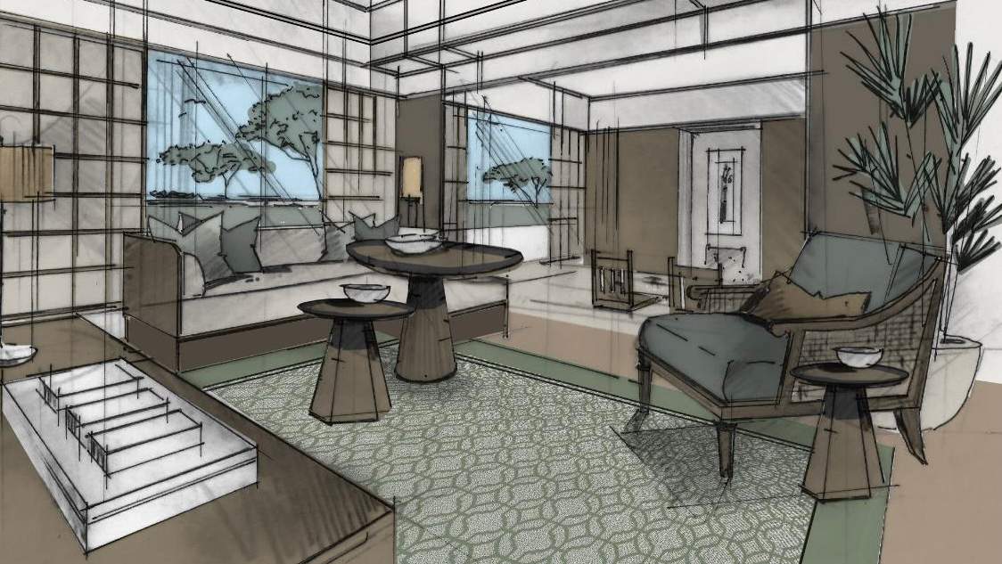 The design balanced American standards of design and comfort with Japanese hospitality influences, elevating the guest experience while honoring the local context. The result was a refreshed hotel environment that serves as a haven for service members, families, and guests living abroad.