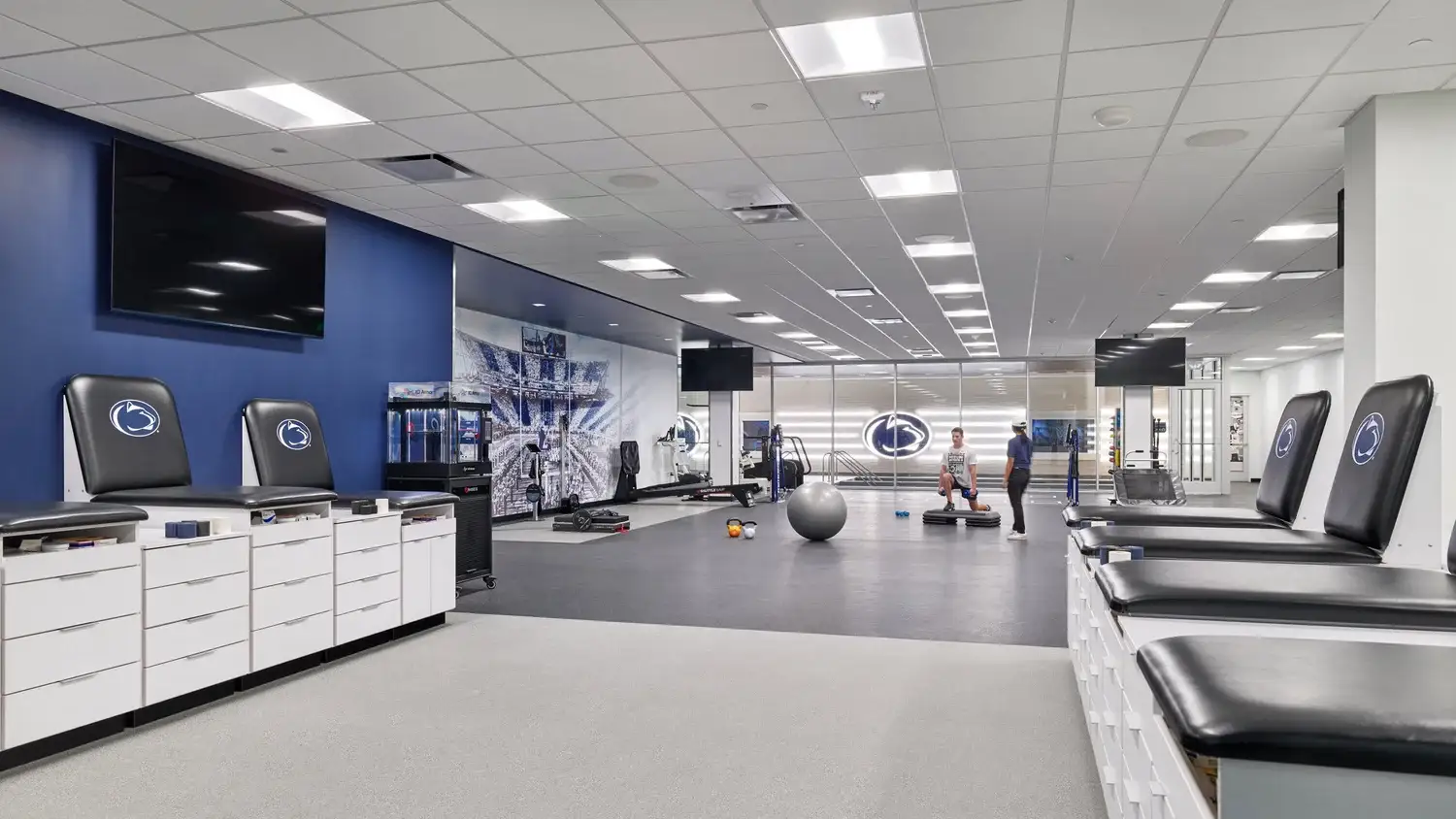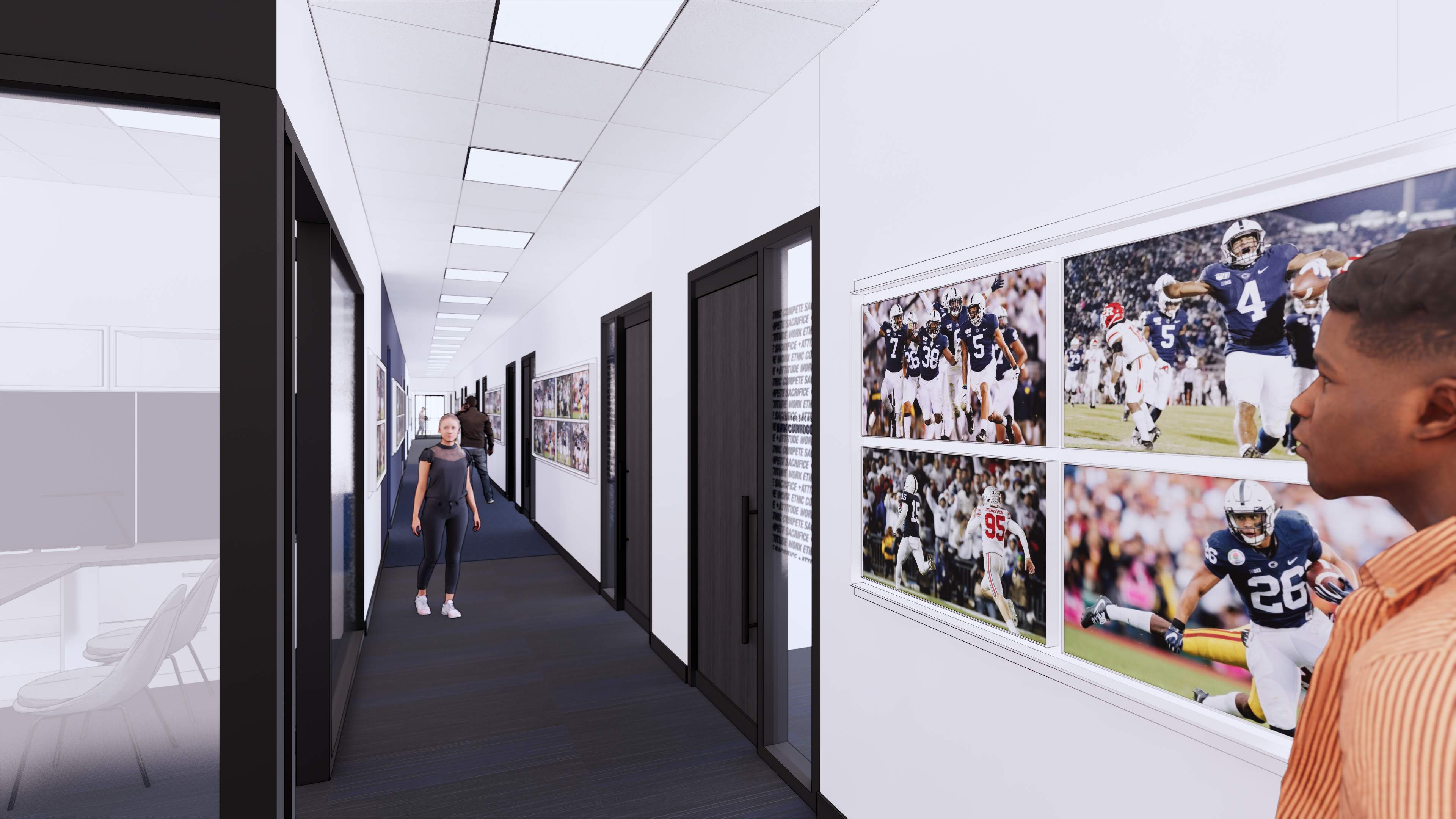 As Senior Project Interior Designer, I led the design for Phase 2, shaping both athlete-focused amenities and staff work environments. I collaborated with stakeholders to ensure the weight room, sports medicine areas, and hydrotherapy pool met performance-driven needs, while also elevating the athlete and recruit experience through design. For the second-floor offices, I guided the design of spaces that support collaboration while honoring the program’s legacy, highlighted through the curated trophy showcase. My role balanced design execution with strong client relationships, ensuring the expansion reflected both the spirit and future of Penn State Football.