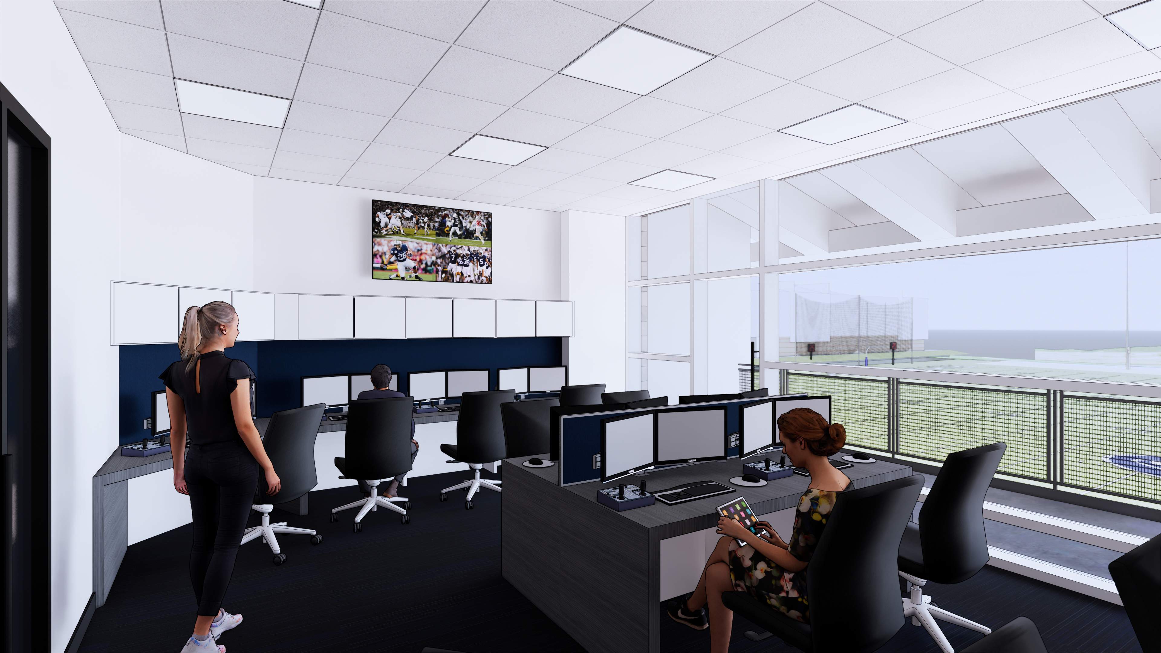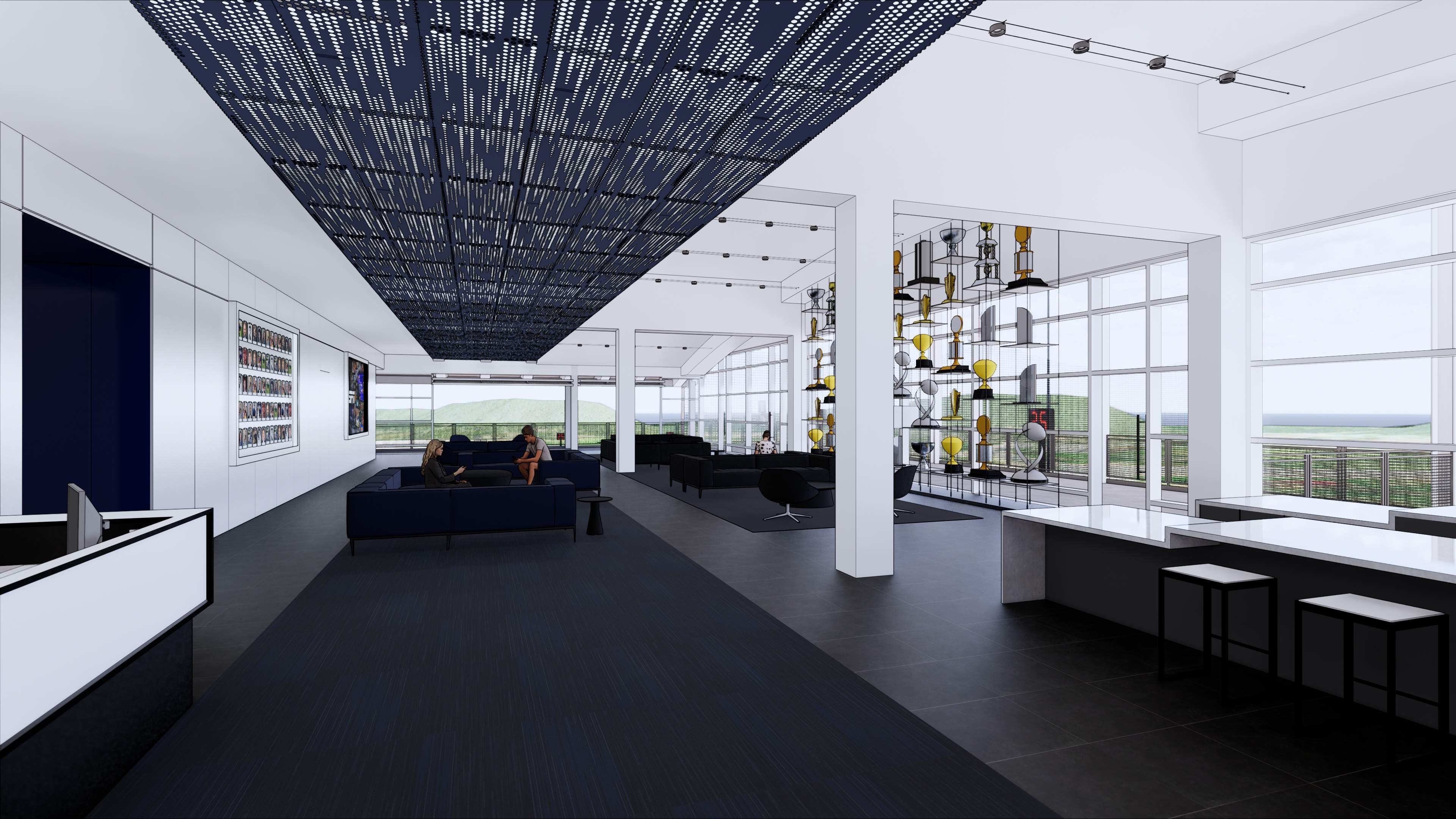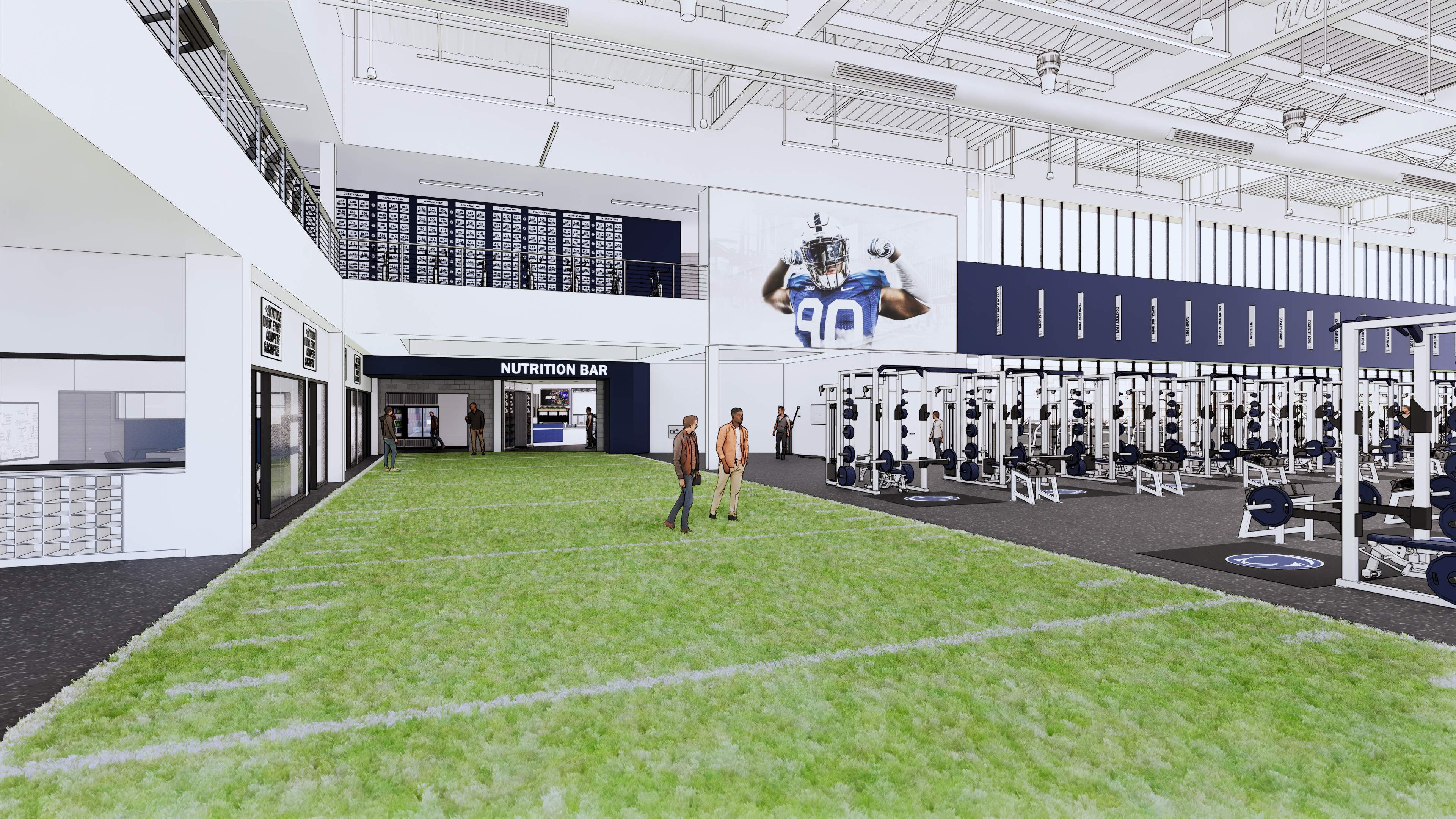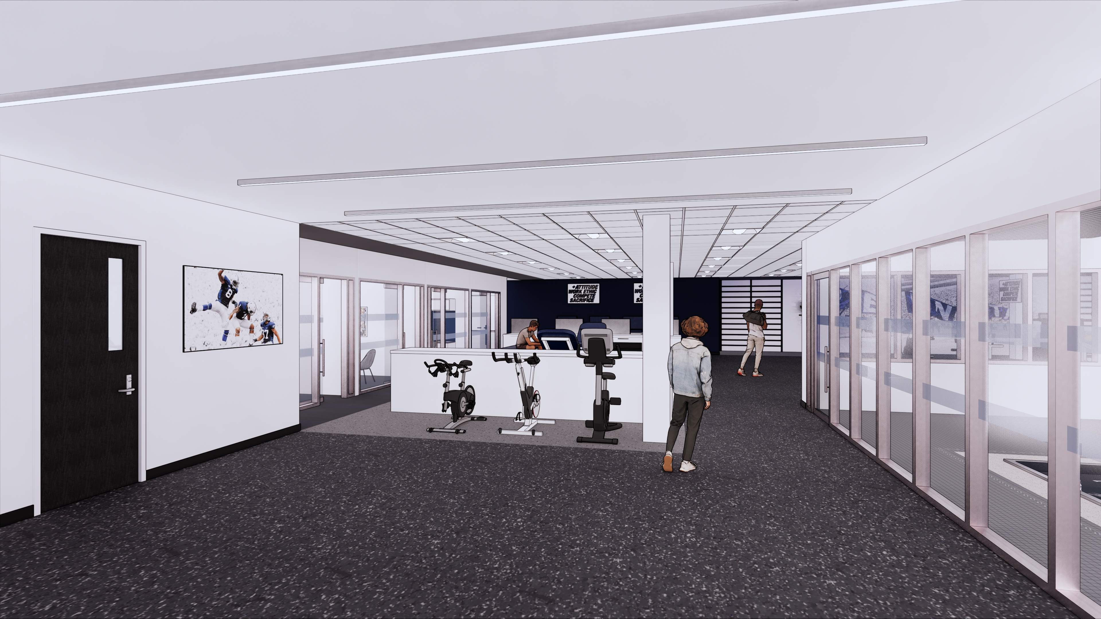 The addition includes a large weight room with direct connection to the practice field, a nutrition bar, sports medicine and rehabilitation suites, and a hydrotherapy pool—spaces designed to advance performance, recovery, and wellness.